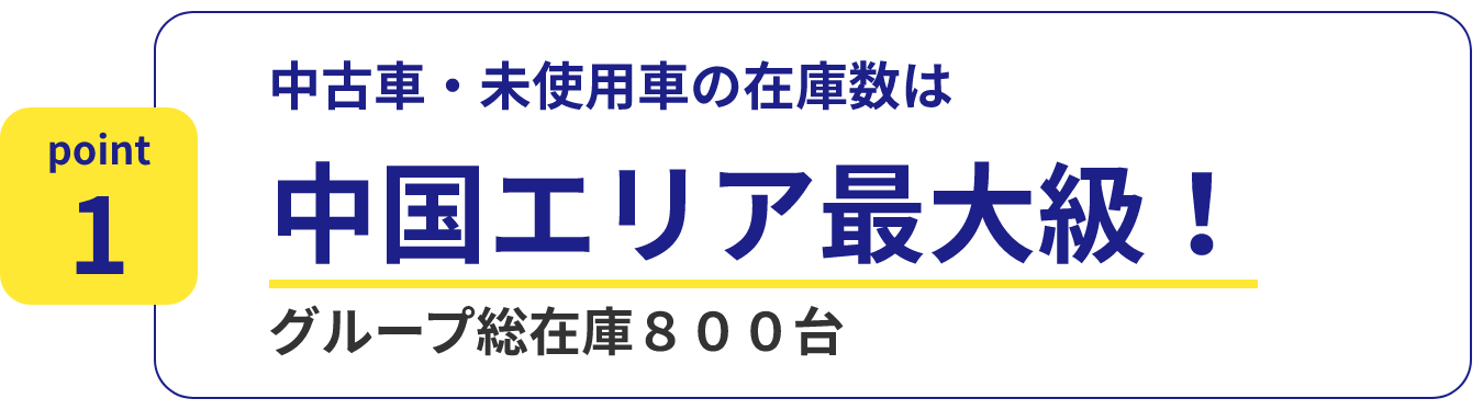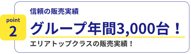当店は、お陰様で広島・山口エリアで多くのお客様にお選びいただき、 グループで年間3,000台 の自動車販売をさせて頂いております。