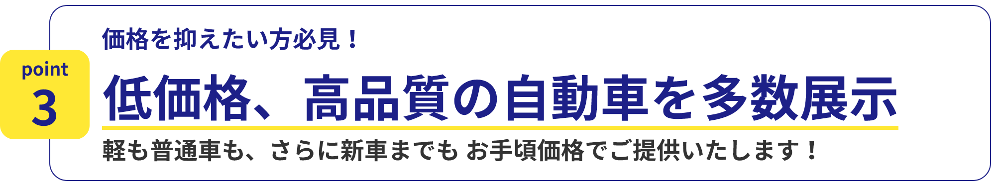 全域のお客様に喜んで頂けるよう安価な自動車を多数ご用意しております。